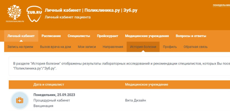 Для просмотра результатов исследований выбираем вкладку “История болезни”
